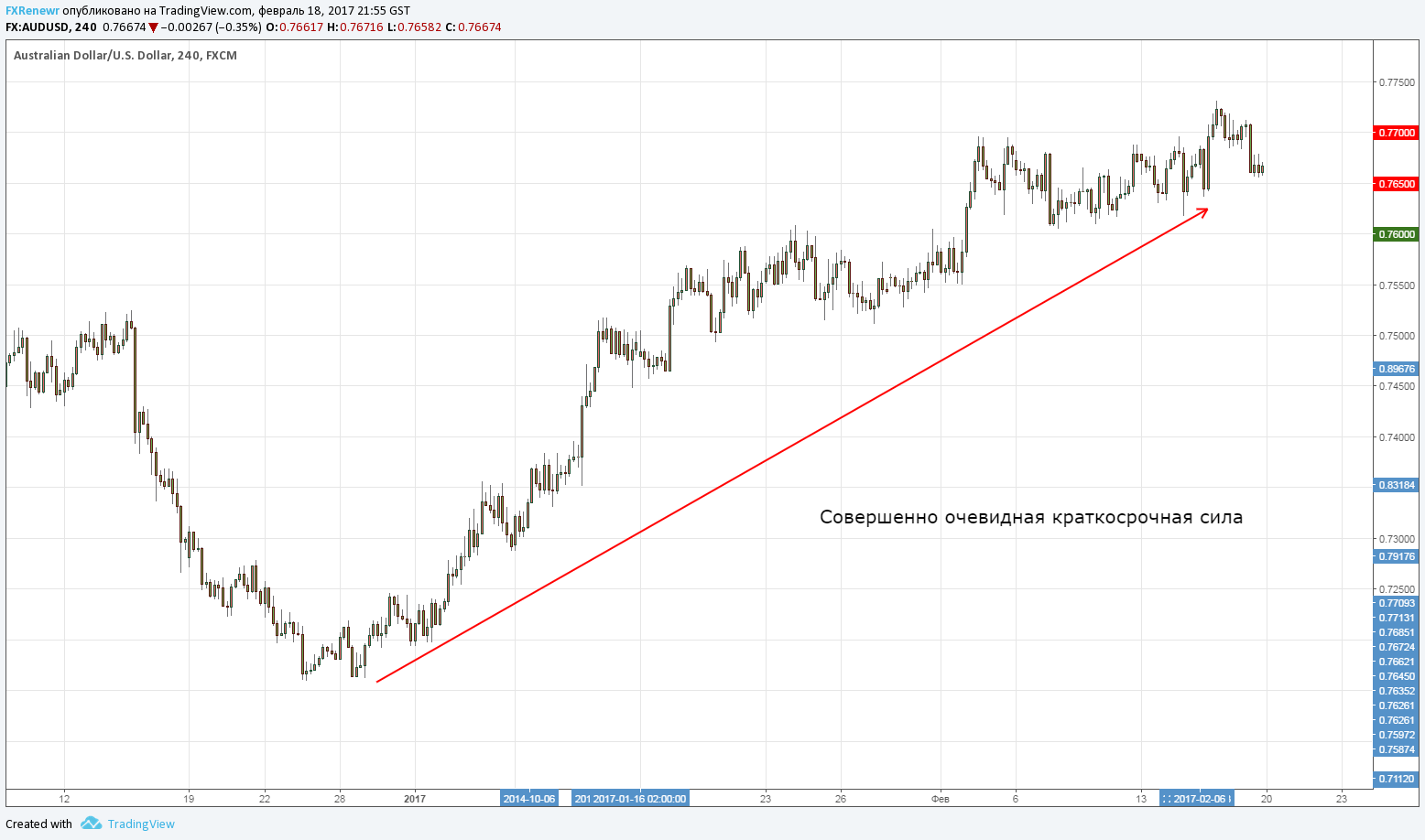 Так что уже присутствовала определенной степени дивергенция между двумя центральными банками… так почему же валютный курс AUDNZD, не пошел в тренде вверх прямо с декабря 2016 года? Ответ заключается в том, что все внимание рынка было сфокусировано на избрании президента Трампа и его потенциальных первых политических шагах в новом году. Поэтому все внимание было на USD, так как большинство центральных банков мира обсуждали «внешние риски», связанные с неопределенностью на политической сцене США.